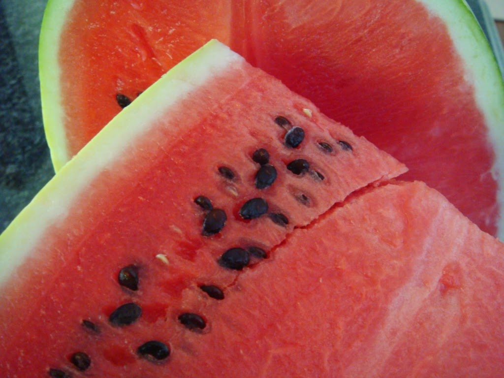 - ярко-красная мякоть свежеразрезанного арбуза;
